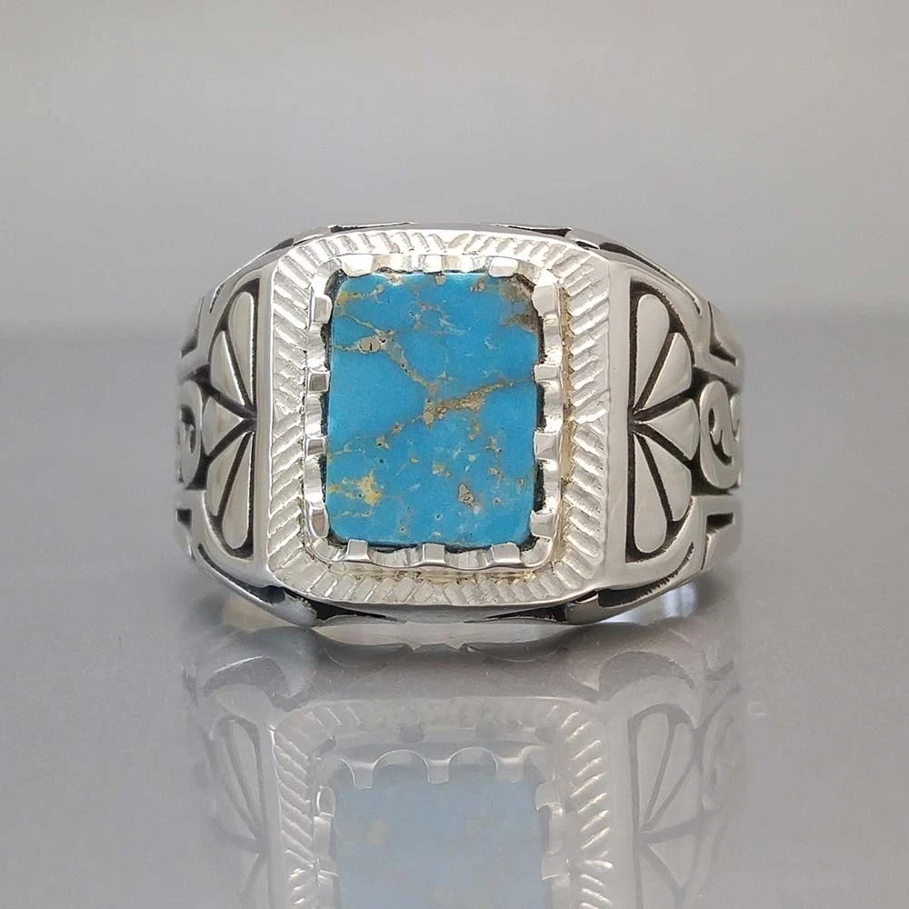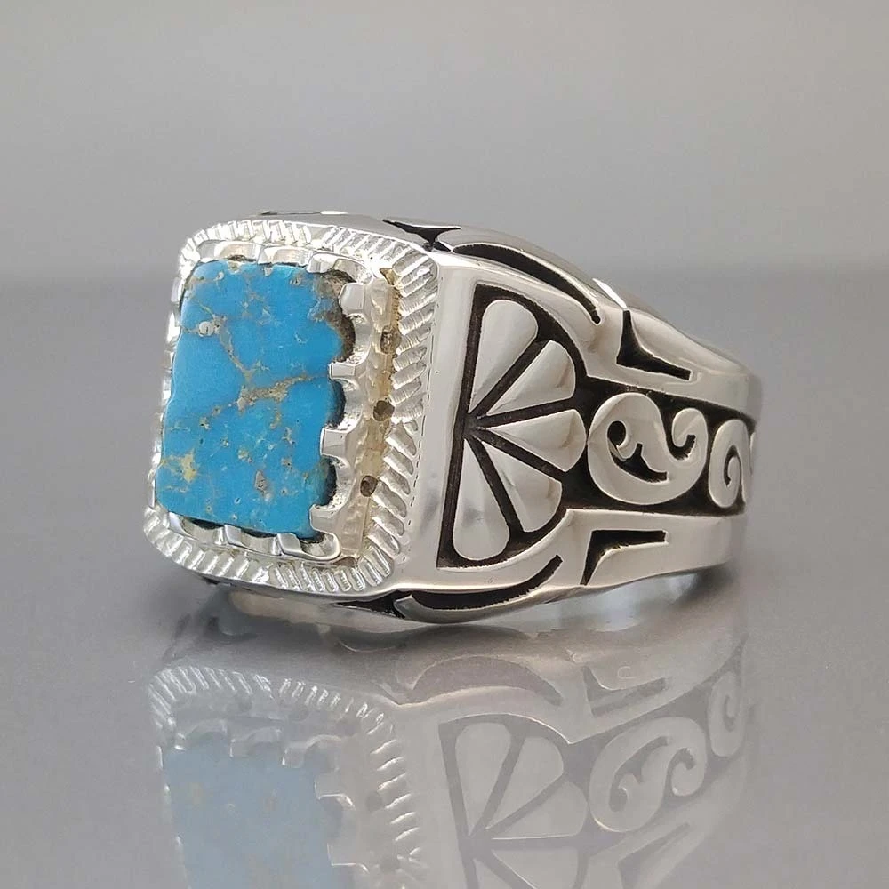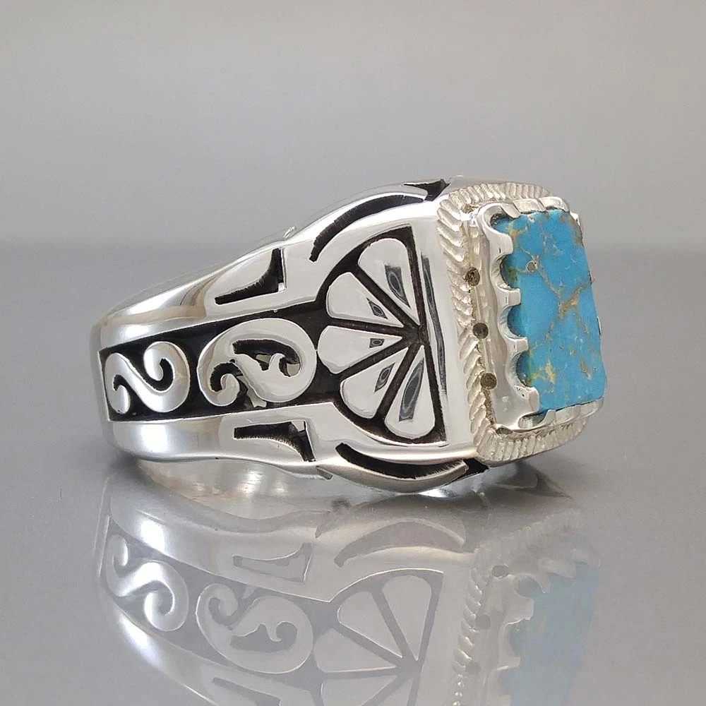 انگشتر نقره مردانه فیروزه نیشابور طبیعی کد S2289