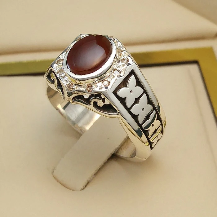 انگشتر نقره مردانه عقیق یمنی سرخ کد S2292
