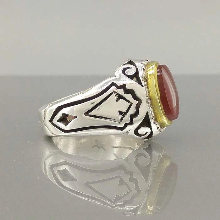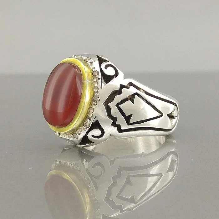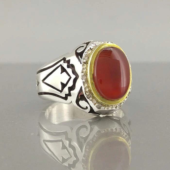 انگشتر نقره مردانه عقیق یمنی سرخ کد S2296