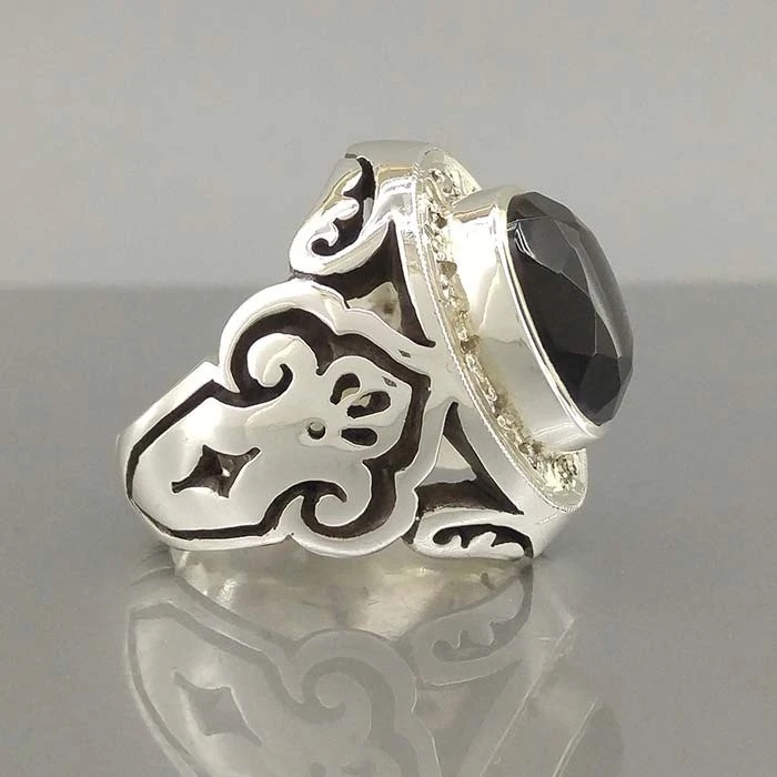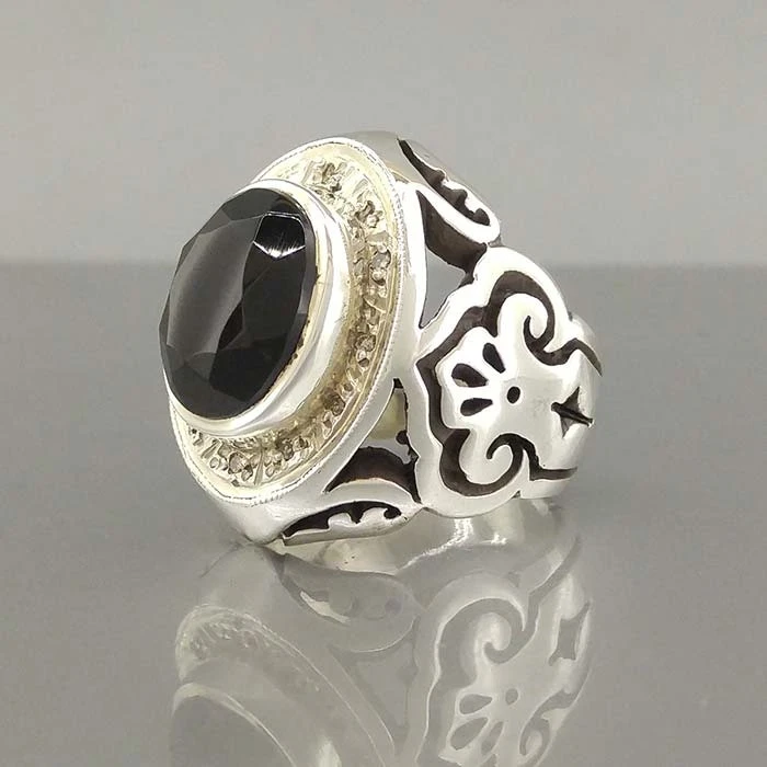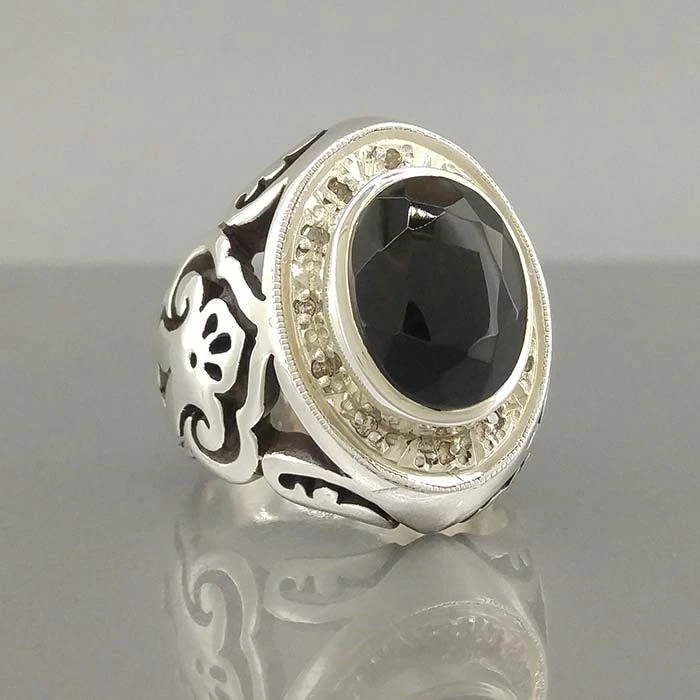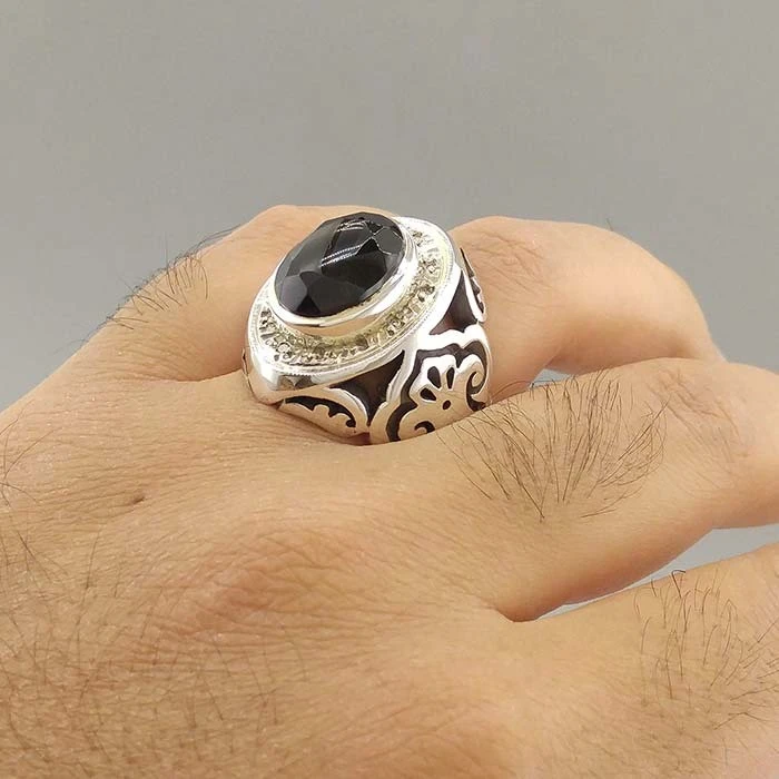 انگشتر نقره مردانه عقیق یمنی مشکی کد S2299
