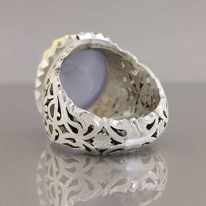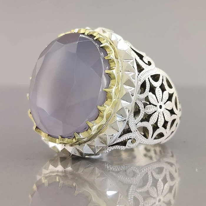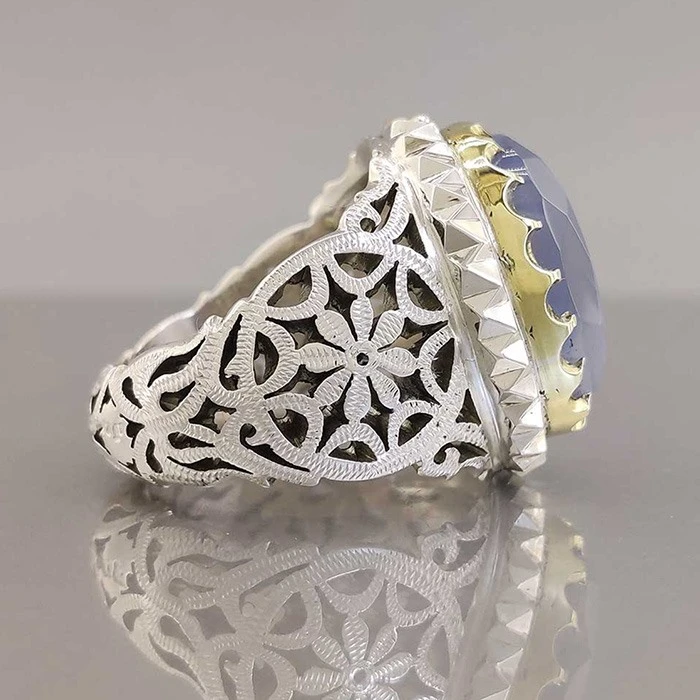 انگشتر نقره مردانه عقیق یمنی کبود الماس تراش کد S142236
