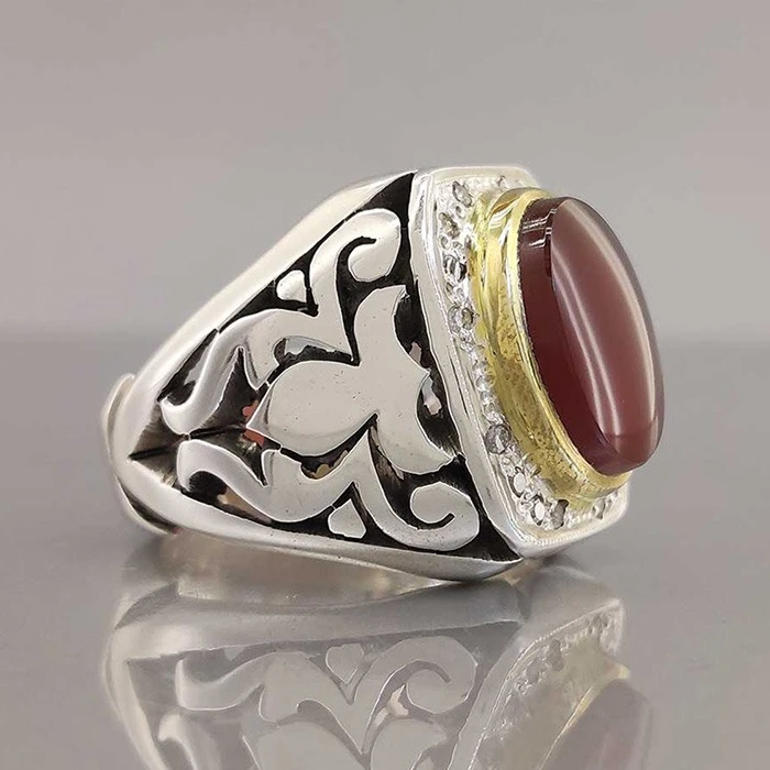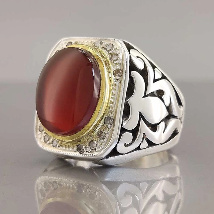 انگشتر نقره مردانه عقیق یمنی سرخ کد S142226