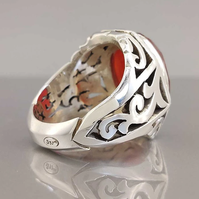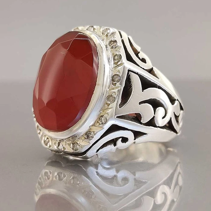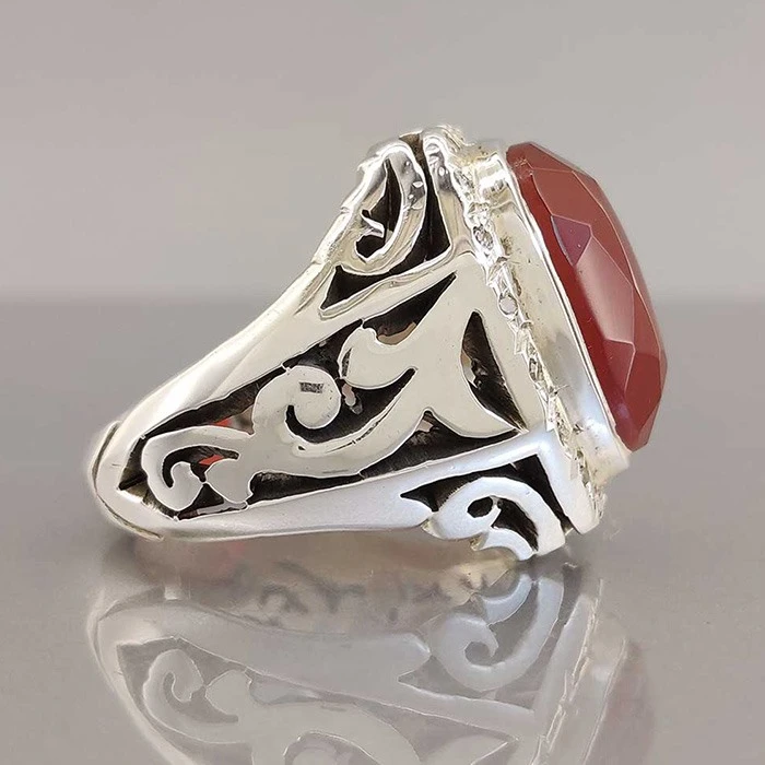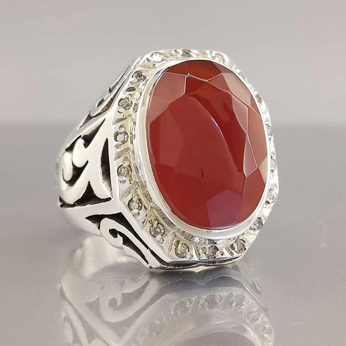 انگشتر نقره مردانه عقیق یمنی سرخ الماس تراش کد S142233