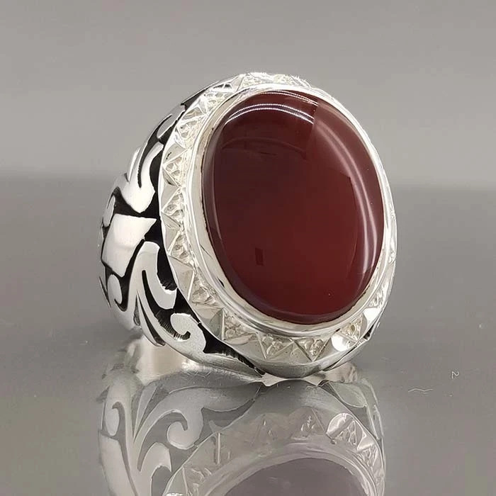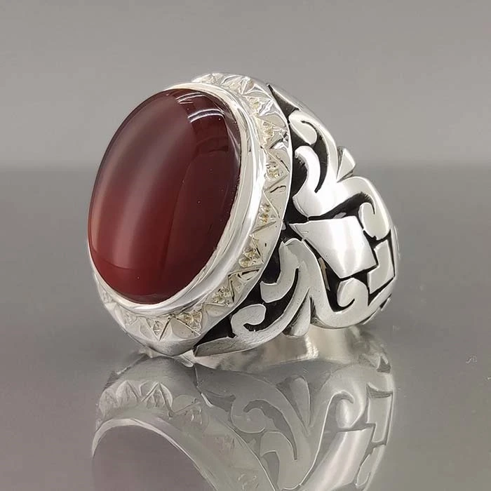 انگشتر نقره مردانه عقیق یمنی سرخ کد S142240