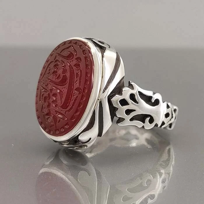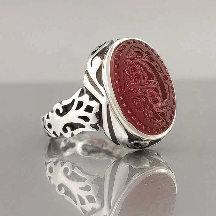 انگشتر نقره مردانه عقیق یمنی سرخ خطی کد S2333
