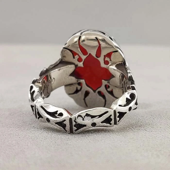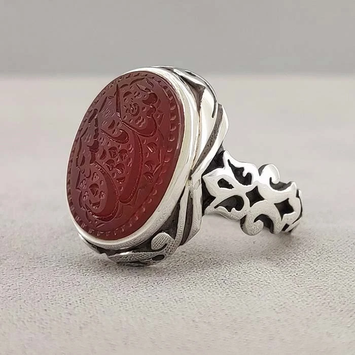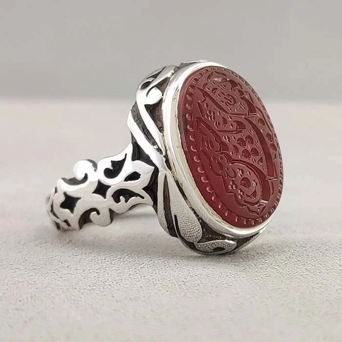 انگشتر نقره مردانه عقیق یمنی سرخ خطی کد S2334