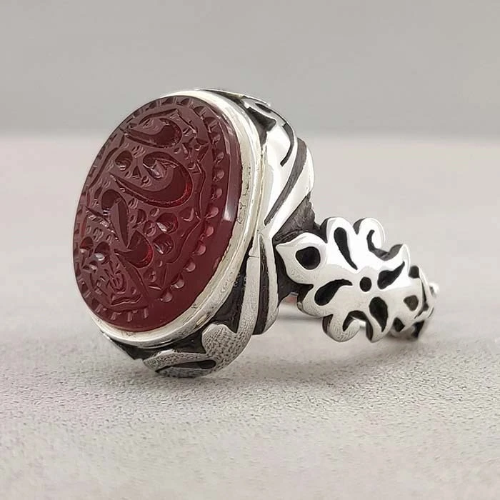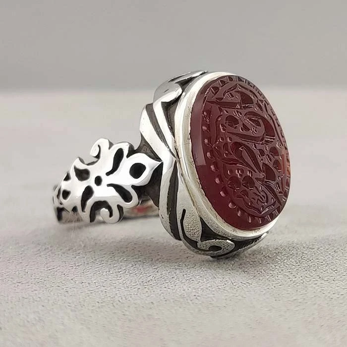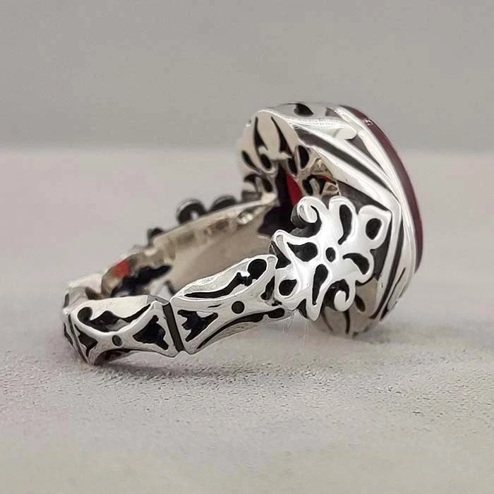 انگشتر نقره مردانه عقیق یمنی سرخ خطی کد S2335