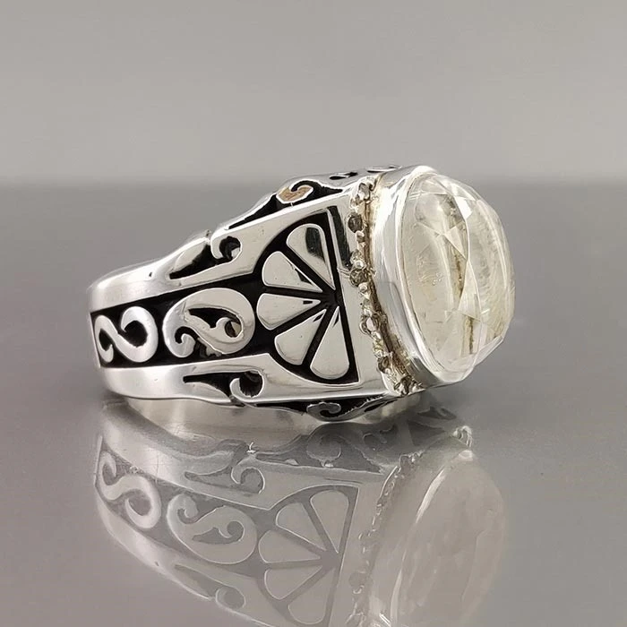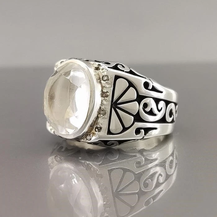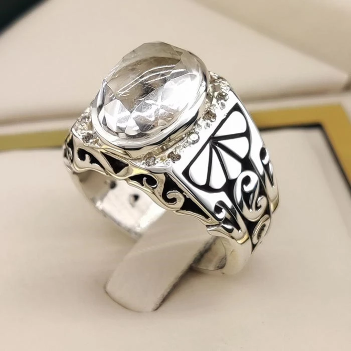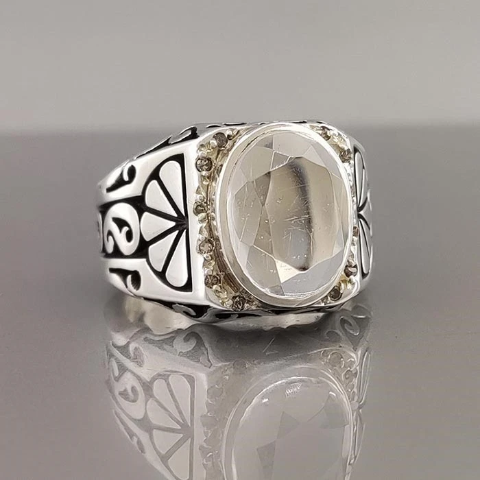 انگشتر نقره مردانه دُرّ نجف الماس تراش کد S145253