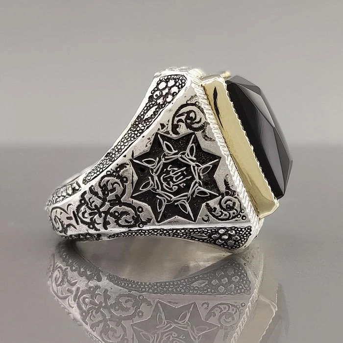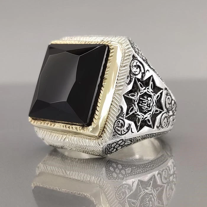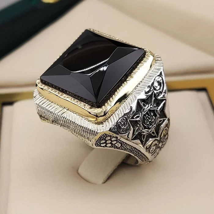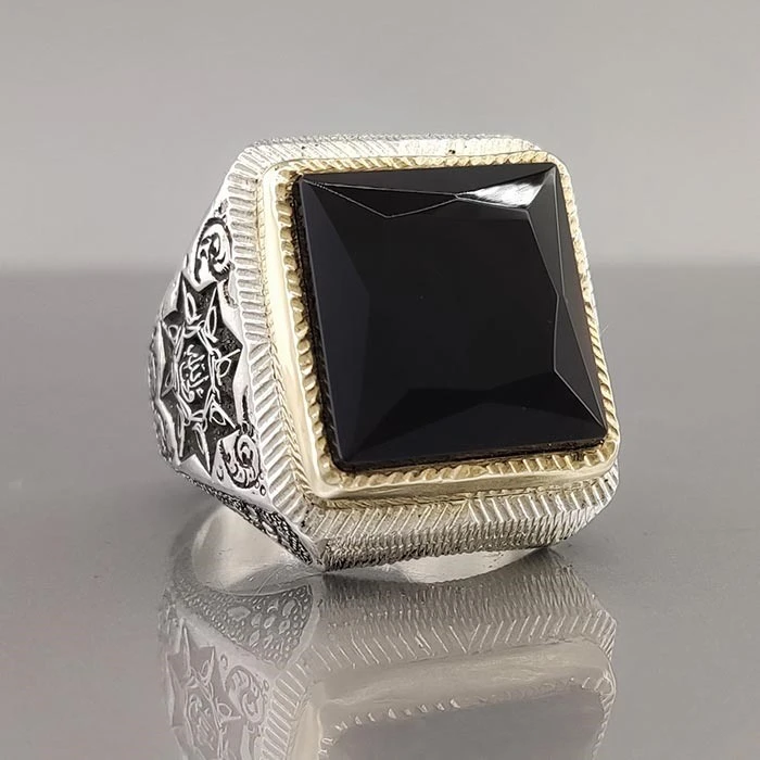 انگشتر نقره مردانه عقیق یمنی مشکی کد S145264