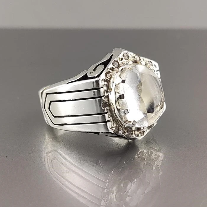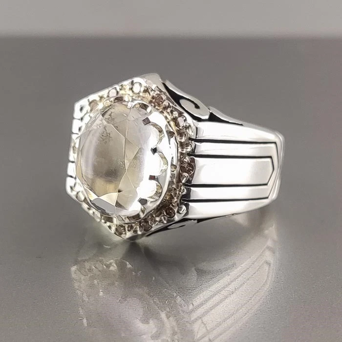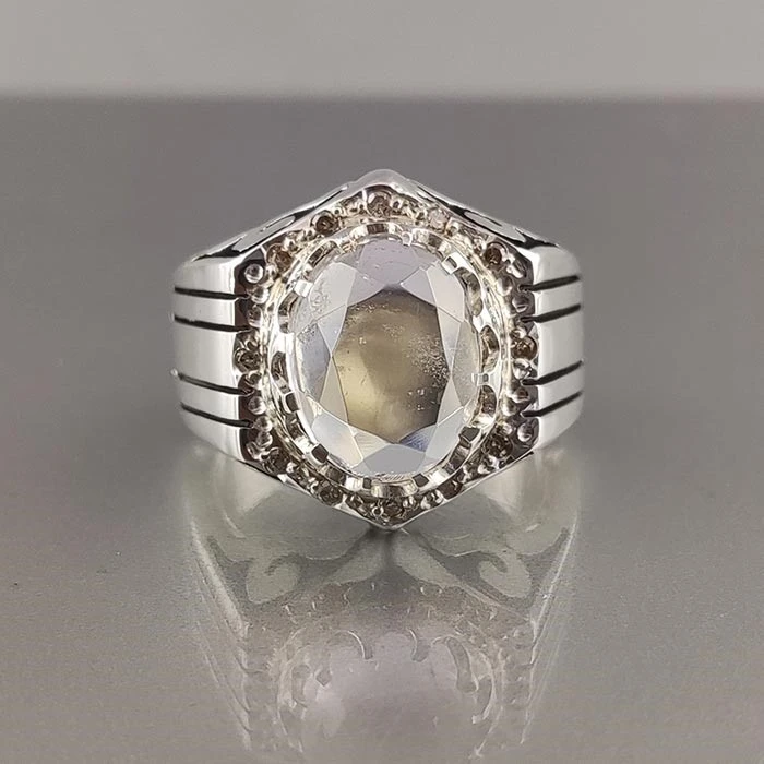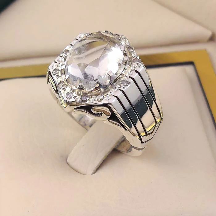 انگشتر نقره مردانه دُرّ نجف الماس تراش کد S2341