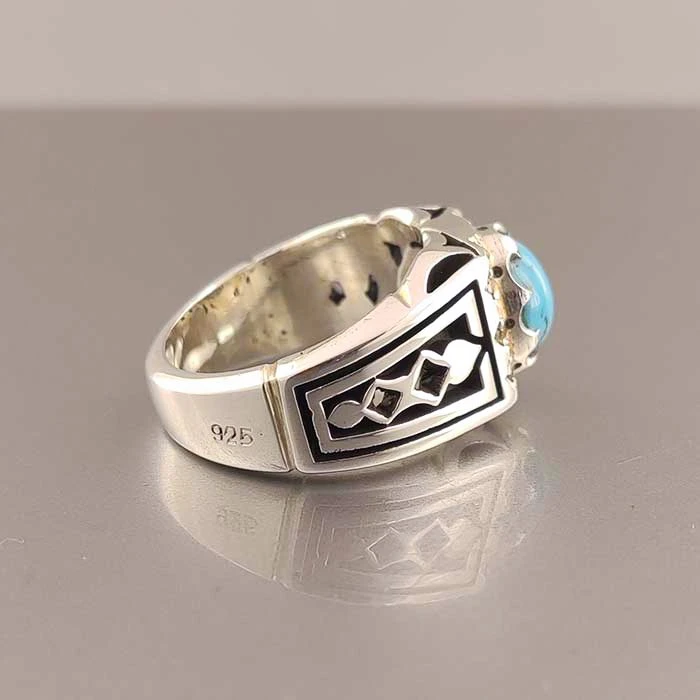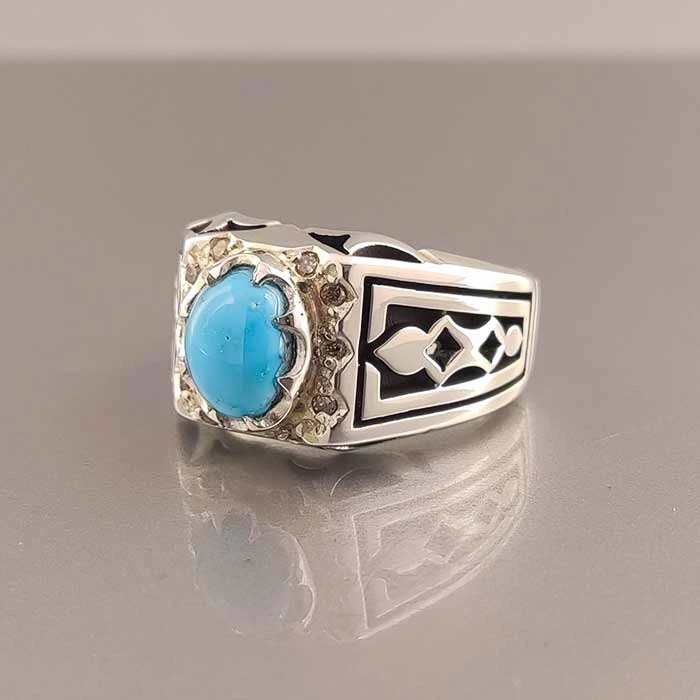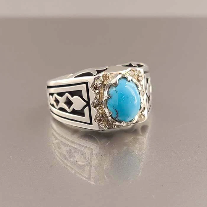 انگشتر نقره مردانه فیروزه نیشابور مردانه کد S2353