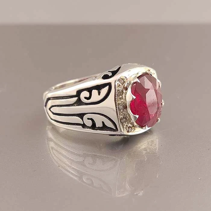 انگشتر نقره مردانه یاقوت سرخ کد S2356
