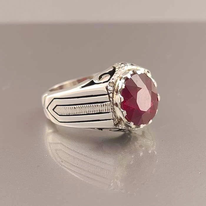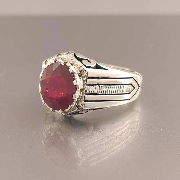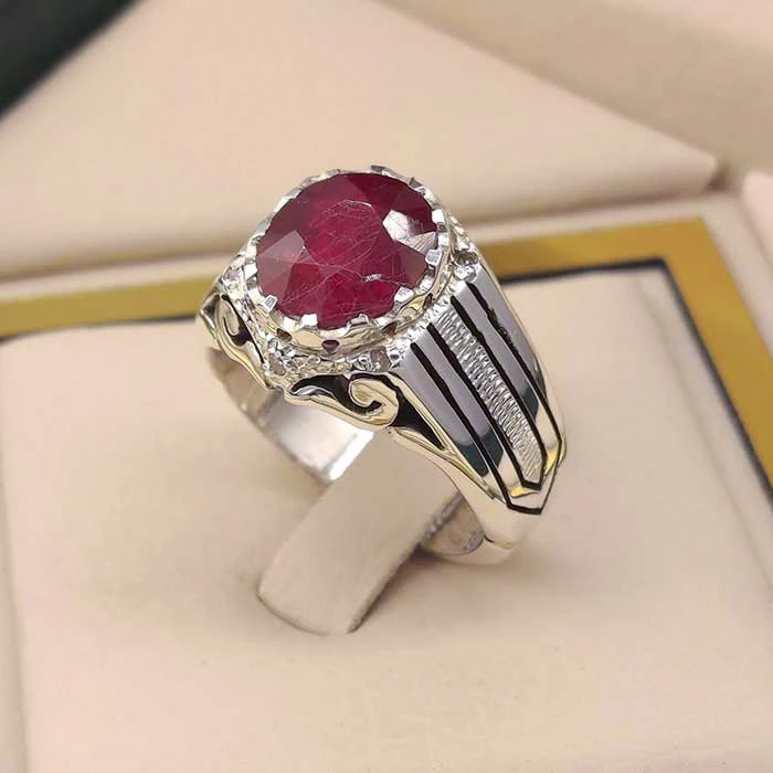 انگشتر نقره مردانه یاقوت سرخ آفریقایی کد S2357