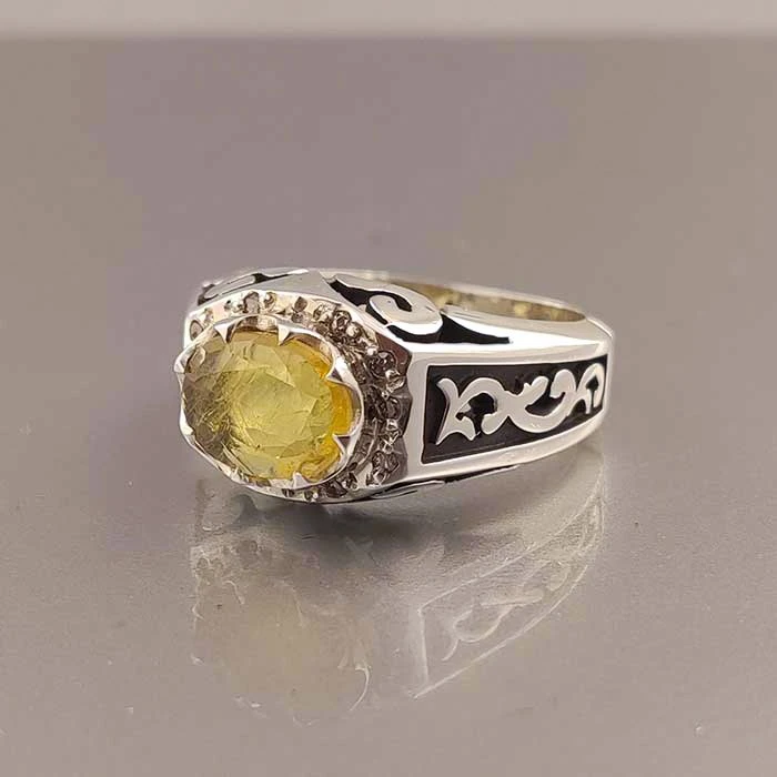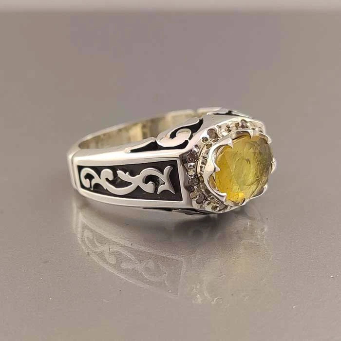 انگشتر نقره مردانه یاقوت زرد کد S2362