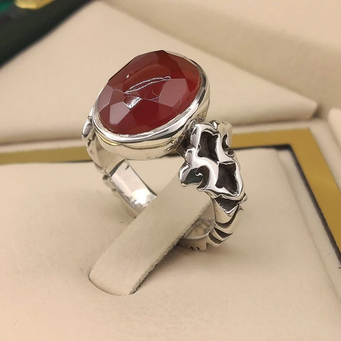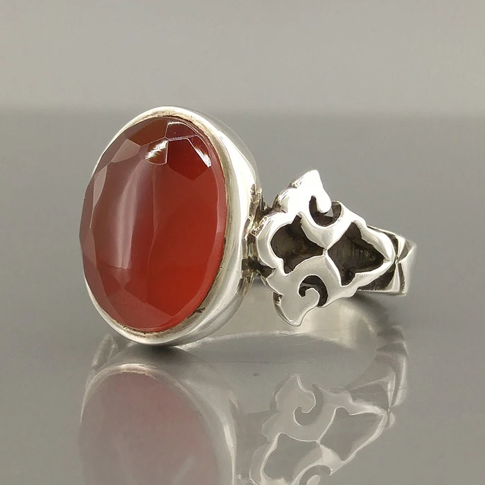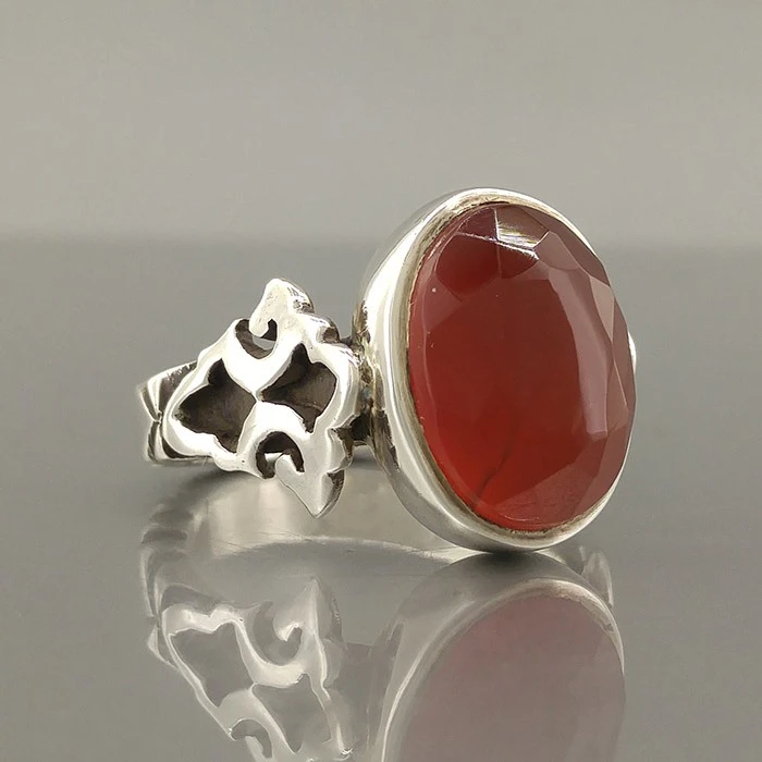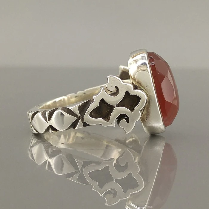 انگشتر نقره مردانه عقیق یمنی سرخ الماس تراش کد S126416