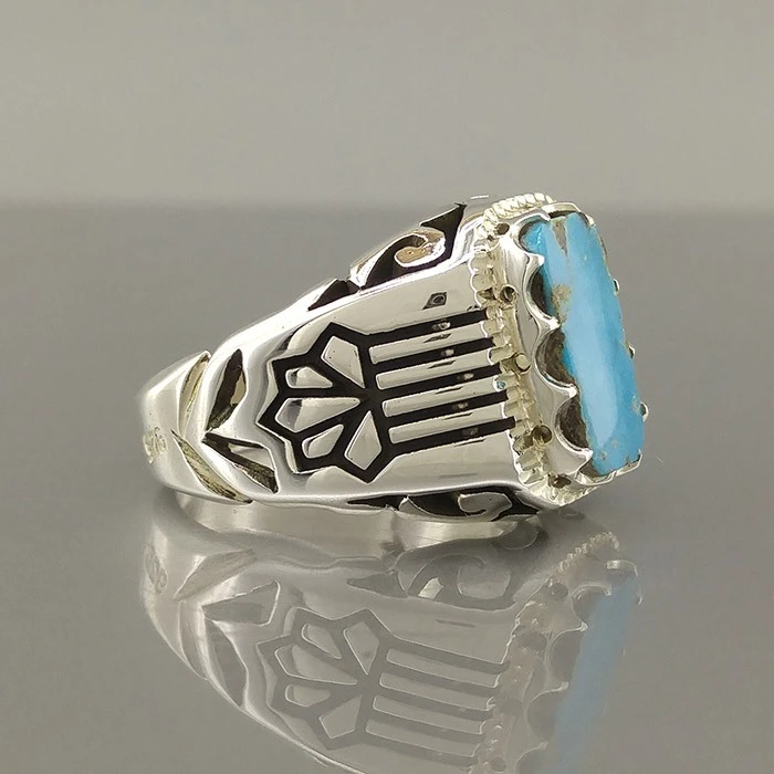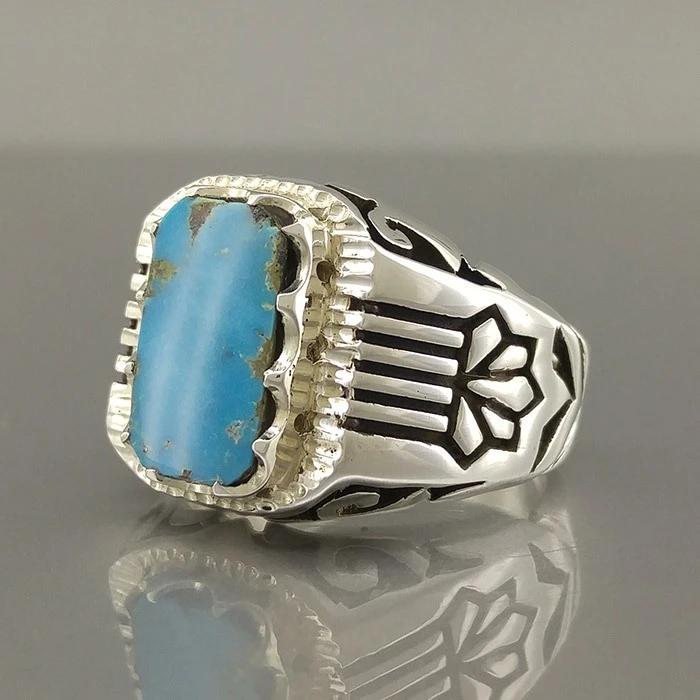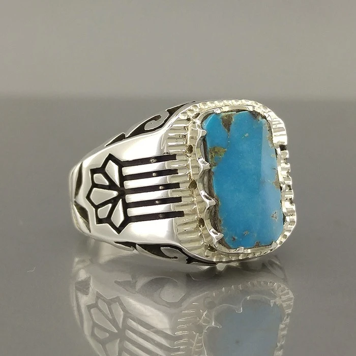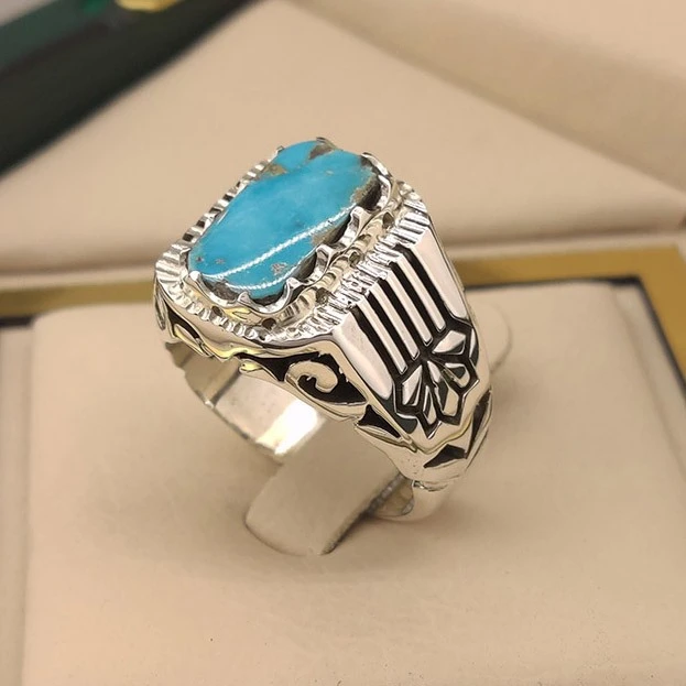 انگشتر نقره مردانه فیروزه نیشابور طبیعی کد S2399