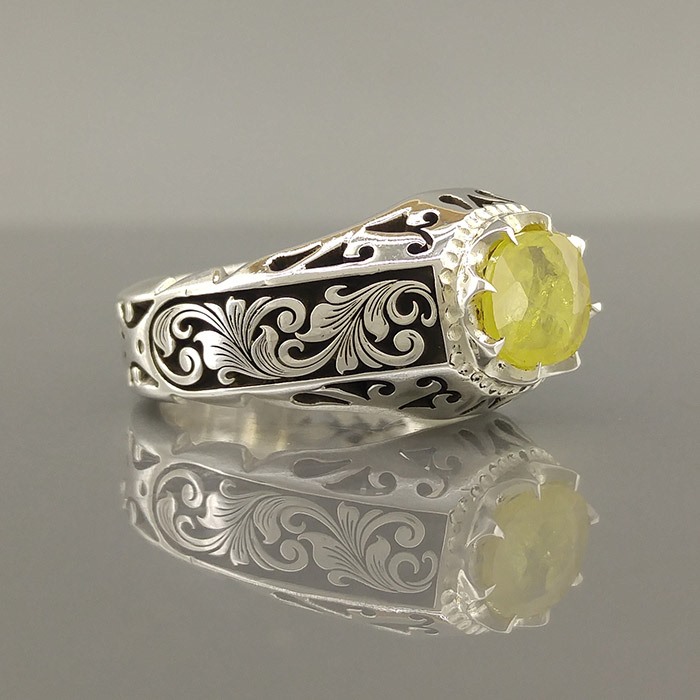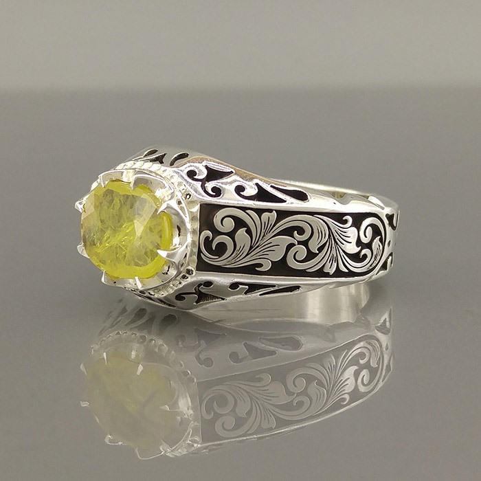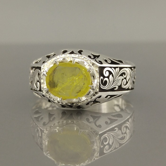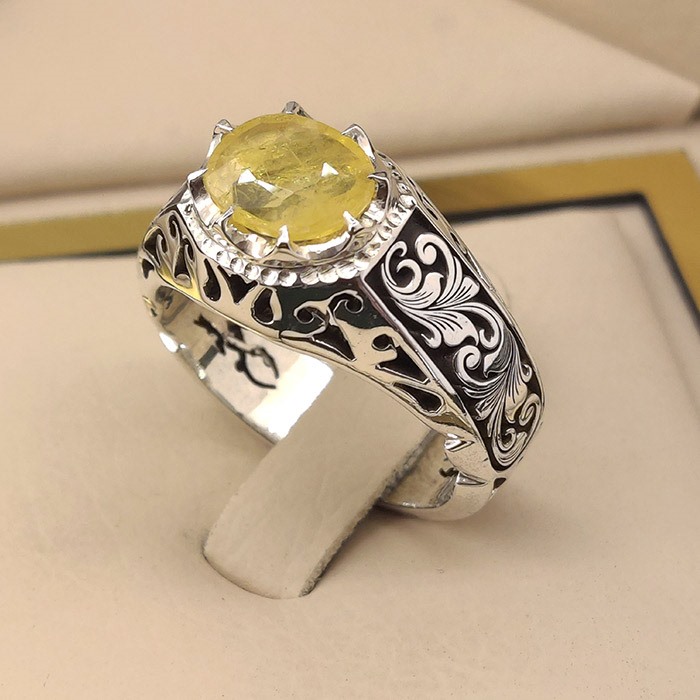 انگشتر نقره مردانه یاقوت زرد کد S2404
