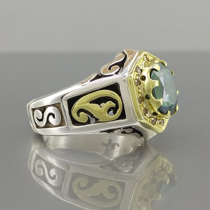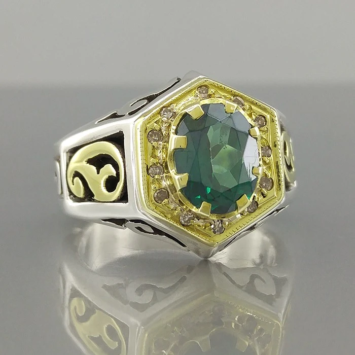 انگشتر نقره مردانه توپاز سبز کد S2409