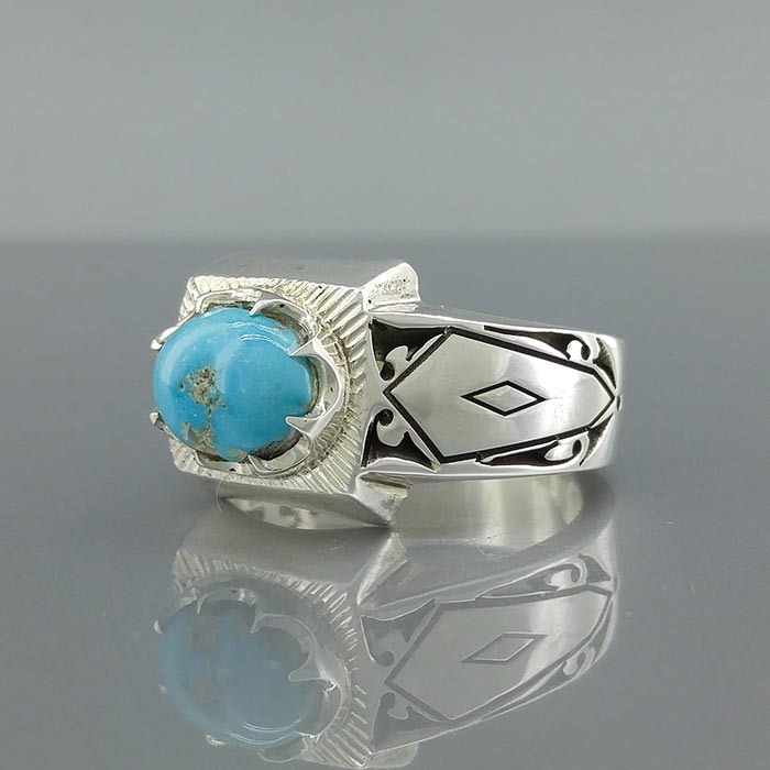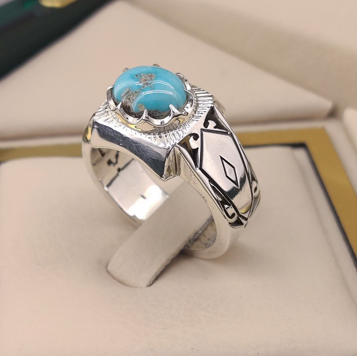 انگشتر نقره مردانه فیروزه نیشابور طبیعی کد S2376