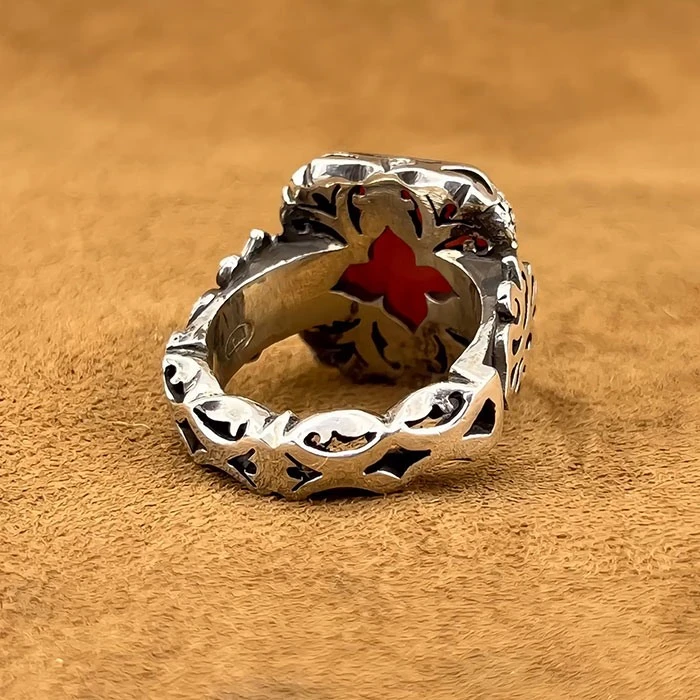 انگشتر نقره مردانه عقیق یمنی سرخ خطی کد S149253