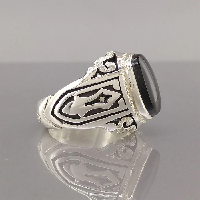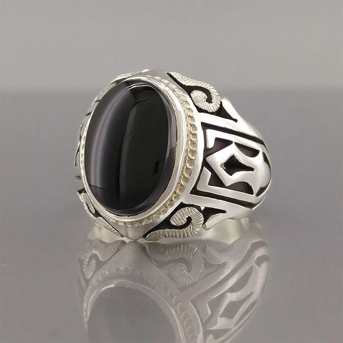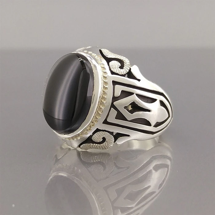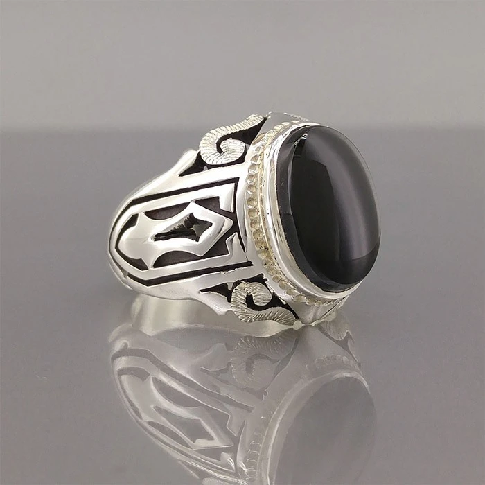 انگشتر نقره مردانه عقیق یمنی مشکی کد S149246