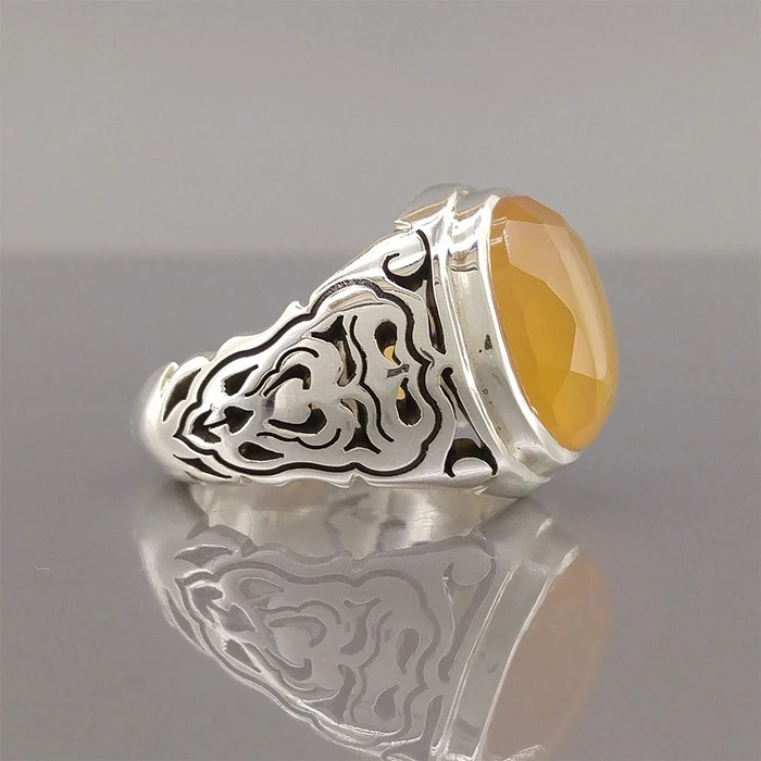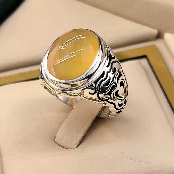 انگشتر نقره مردانه عقیق یمنی پرتقالی کد S149257