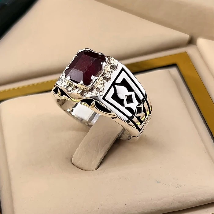 انگشتر نقره مردانه یاقوت سرخ کد S149267