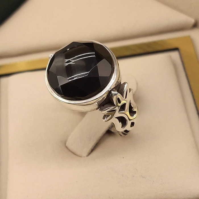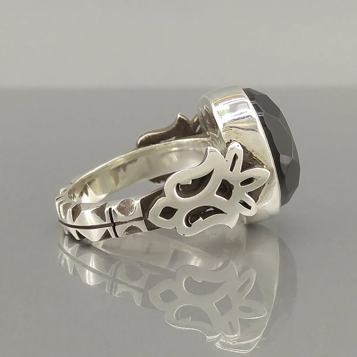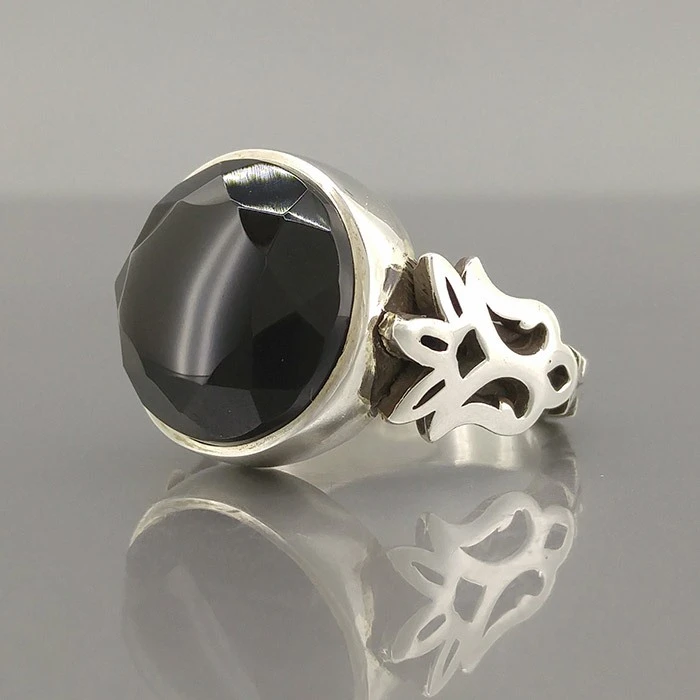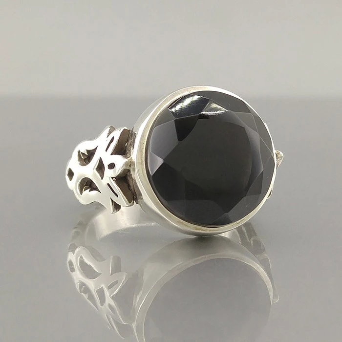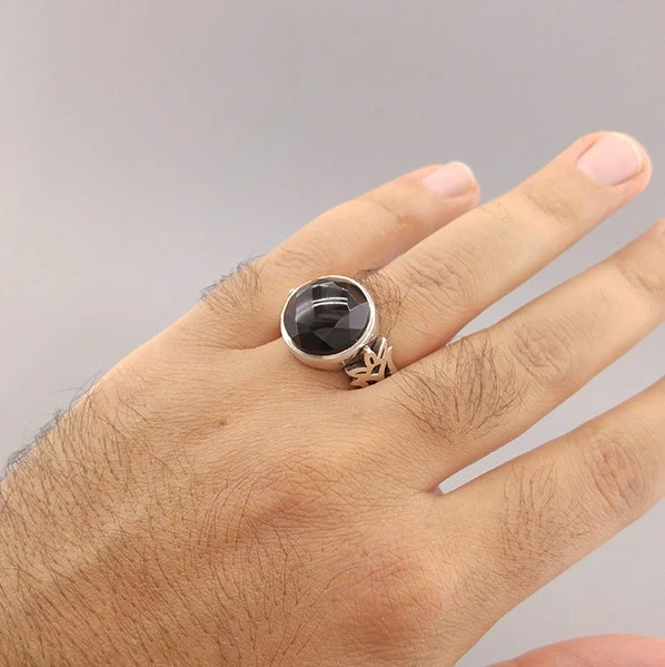 انگشتر نقره مردانه عقیق یمنی مشکی الماس تراش کد S2425