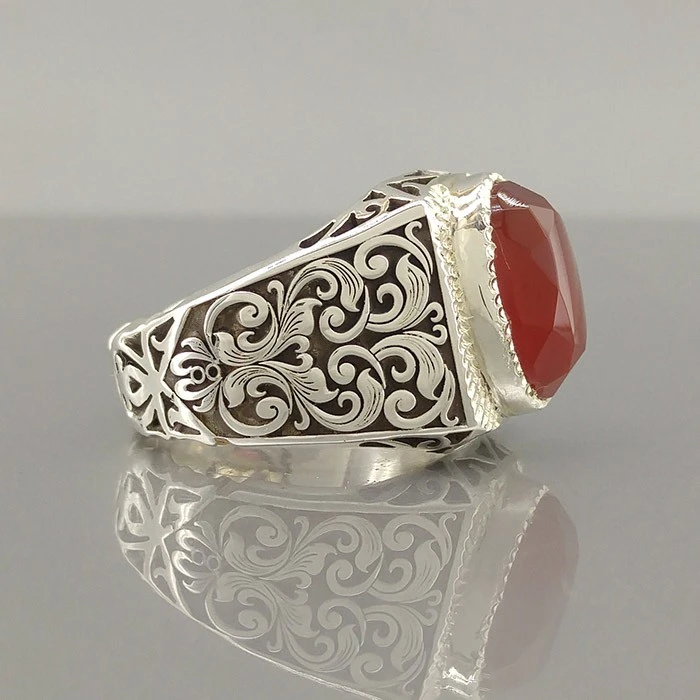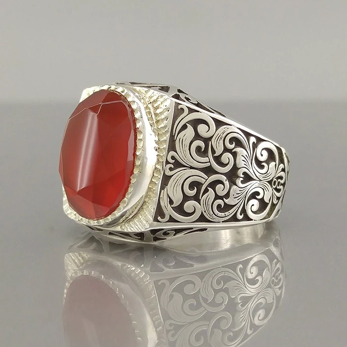 انگشتر نقره مردانه عقیق یمنی سرخ کد S2429