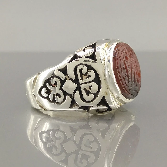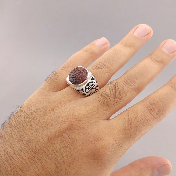 انگشتر نقره مردانه عقیق یمنی خطی کد S2430