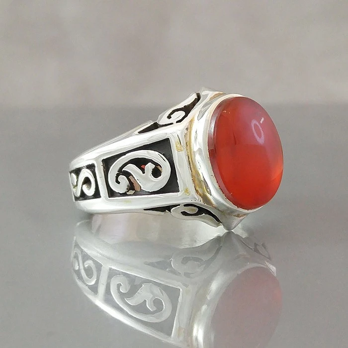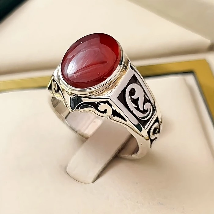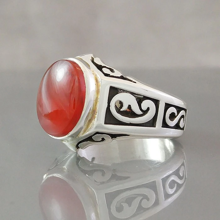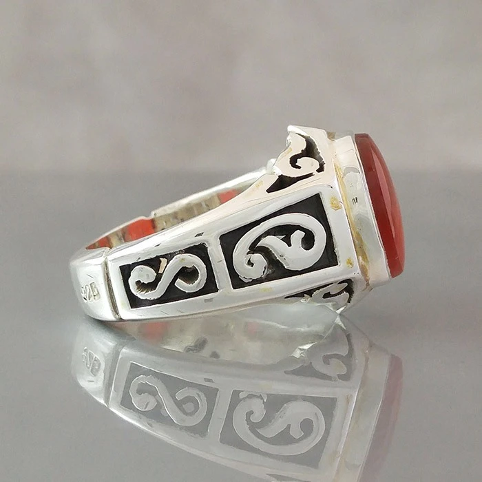 انگشتر نقره مردانه عقیق یمنی سرخ کد S2435