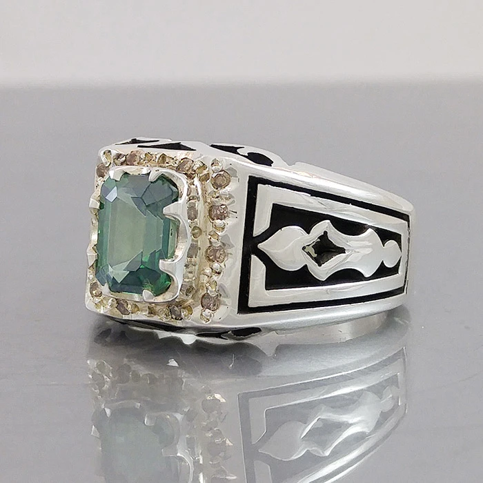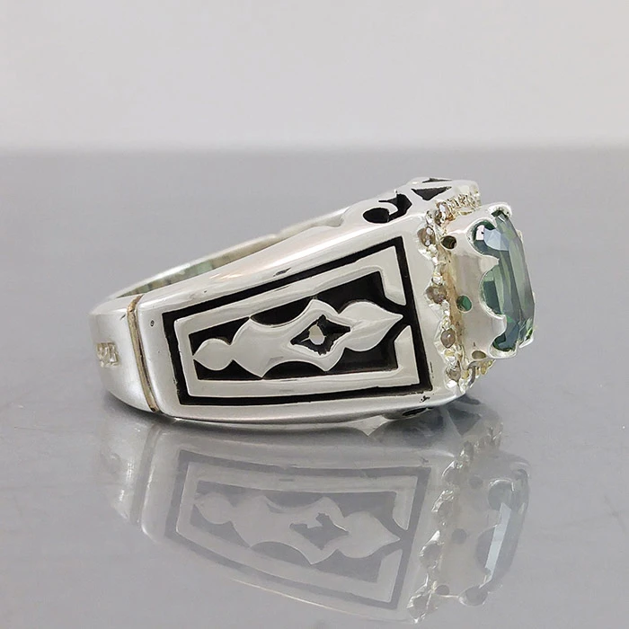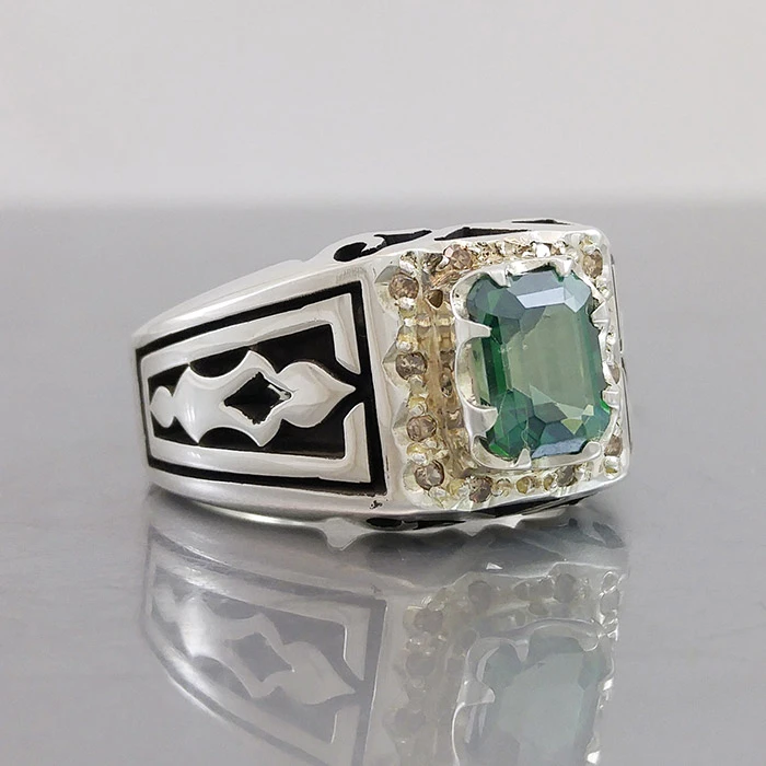 انگشتر نقره مردانه توپاز سبز کد S2496