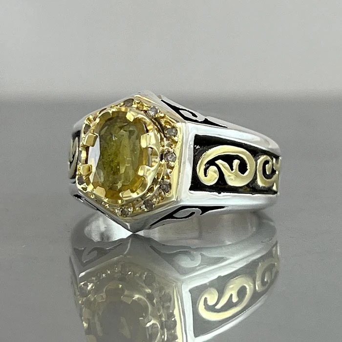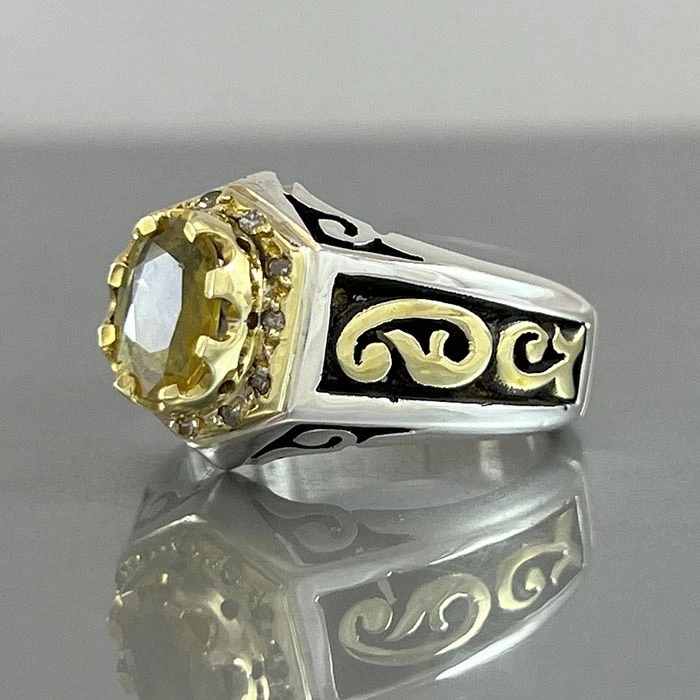 انگشتر نقره مردانه یاقوت زرد کد S2507
