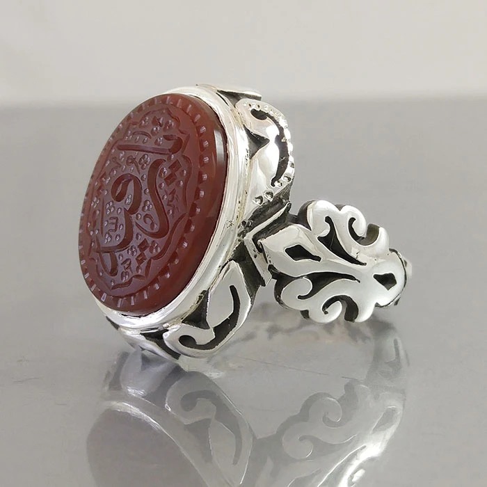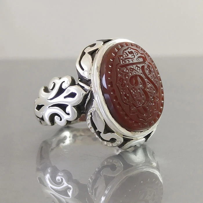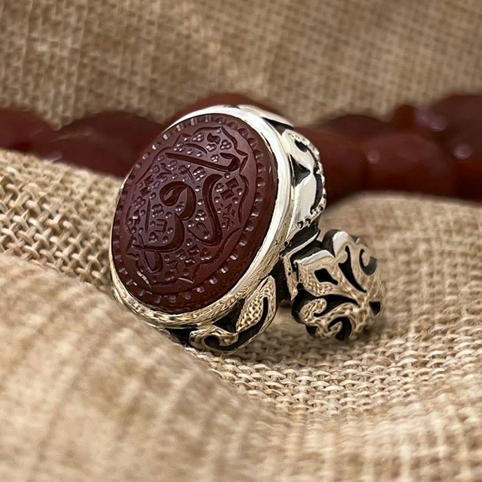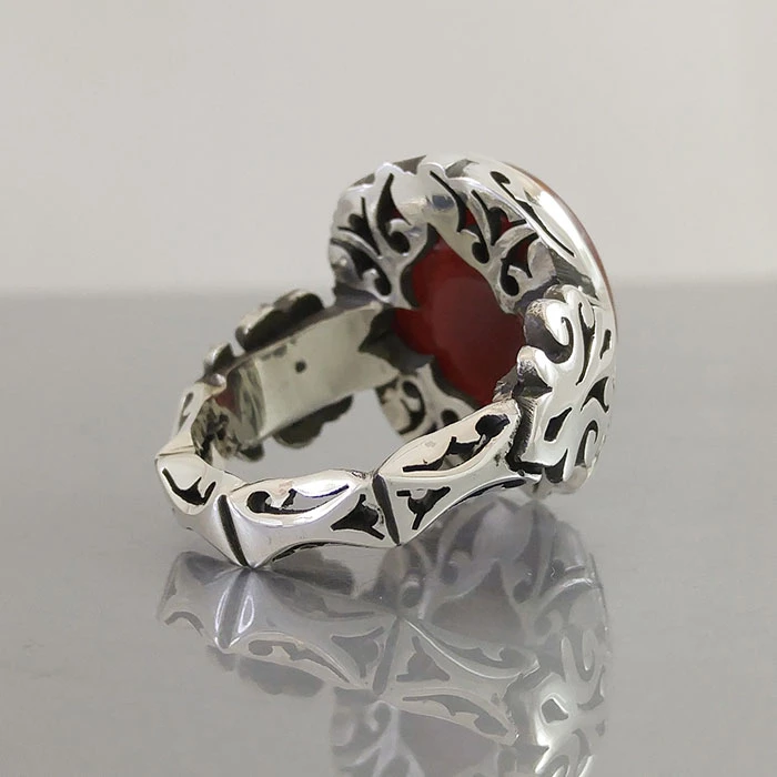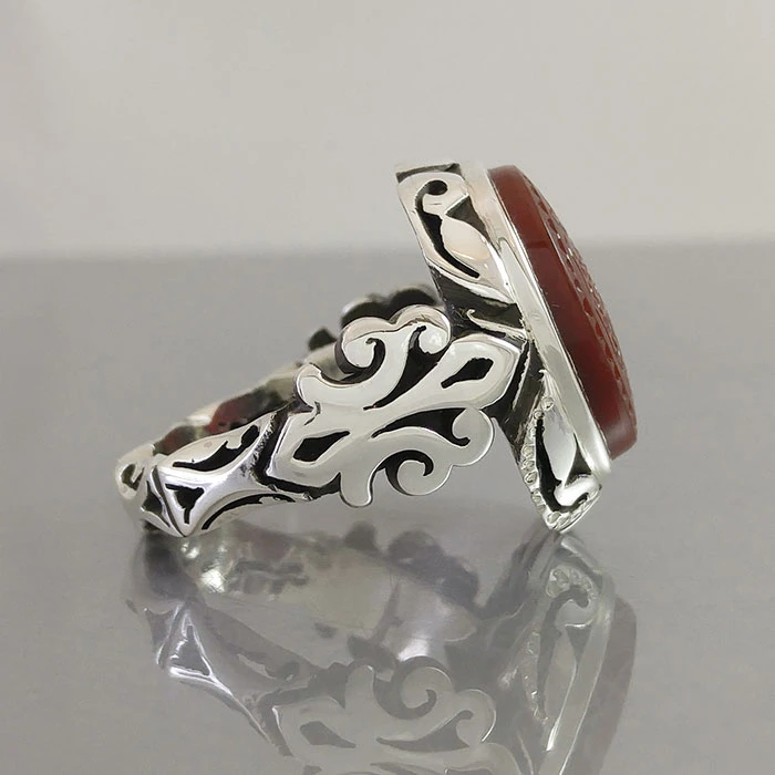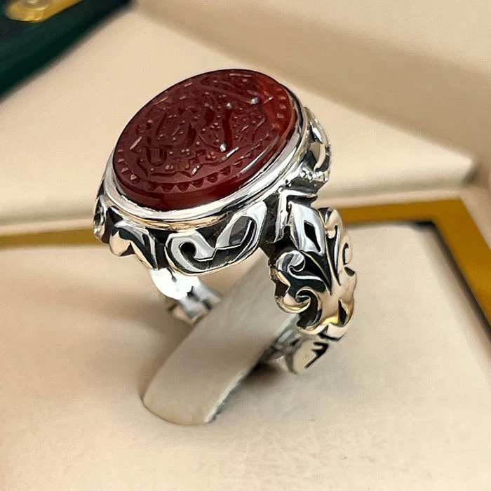 انگشتر نقره مردانه عقیق یمنی سرخ خطی کد S2511