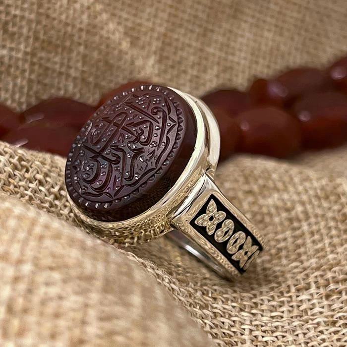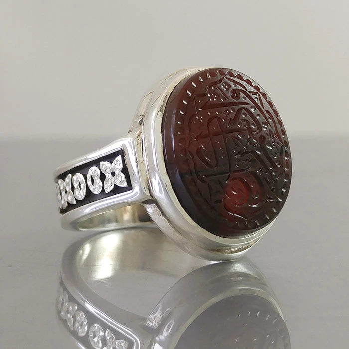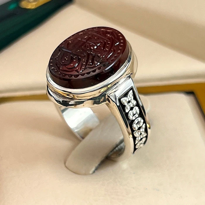 انگشتر نقره مردانه عقیق یمنی سرخ خطی کد S2513