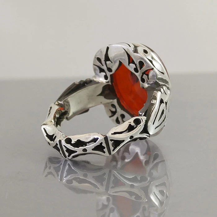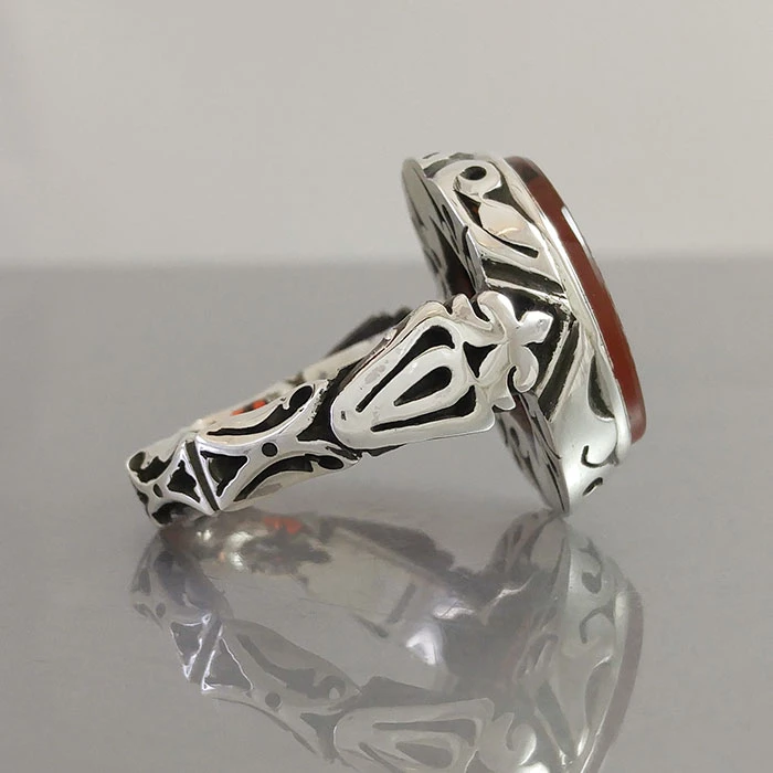 انگشتر نقره مردانه عقیق یمنی سرخ خطی کد S2515