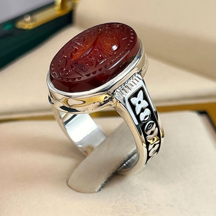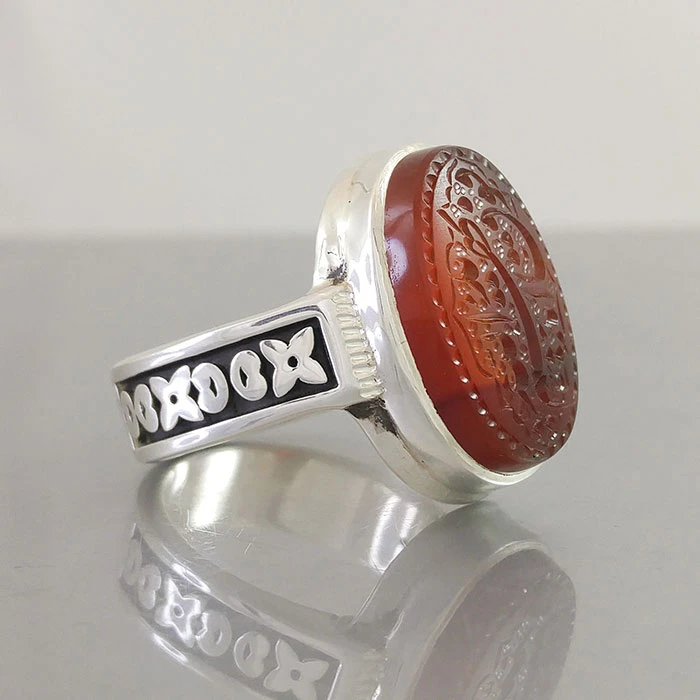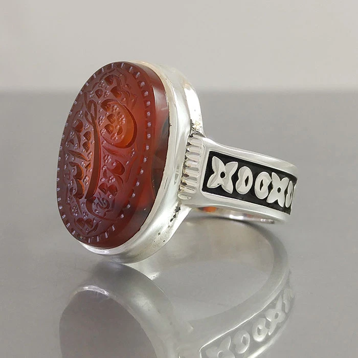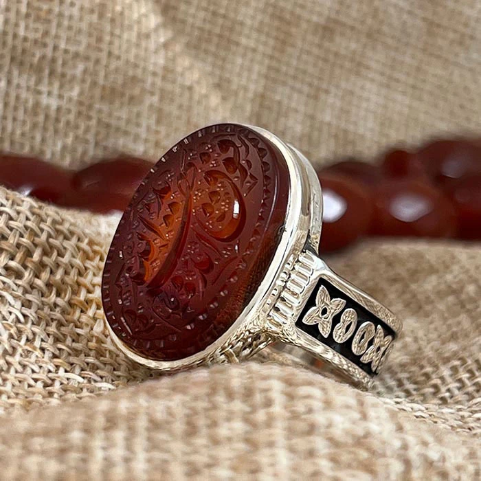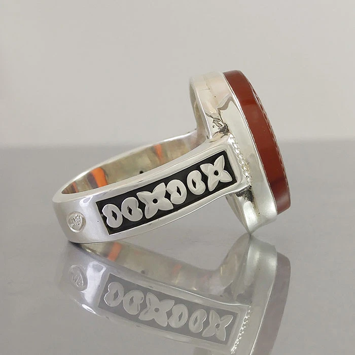 انگشتر نقره مردانه عقیق یمنی سرخ خطی کد S2516