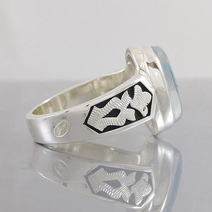 انگشتر نقره مردانه دُرّ نجف زیر فیروزه خطی کد S2529