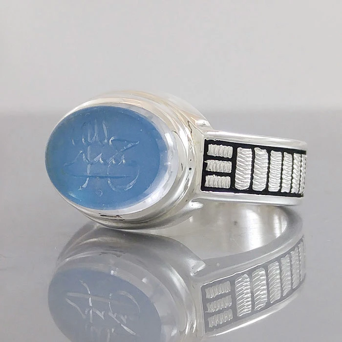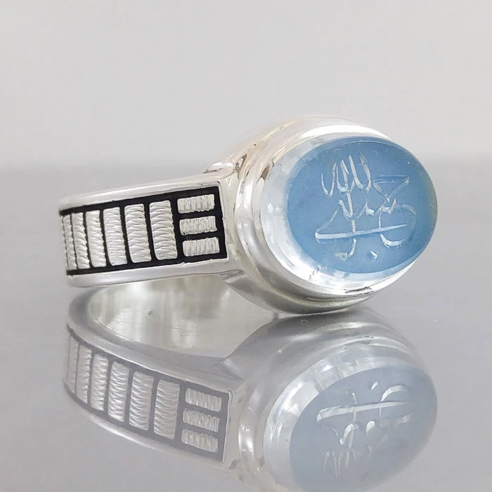 انگشتر نقره مردانه دُرّ نجف زیر فیروزه خطی کد S2530