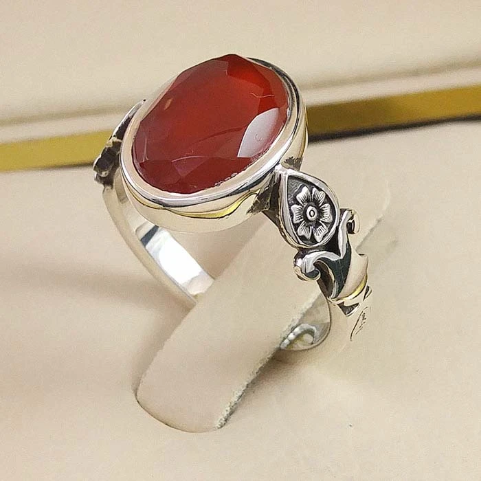 انگشتر نقره مردانه عقیق یمنی سرخ الماس تراش کد S2538
