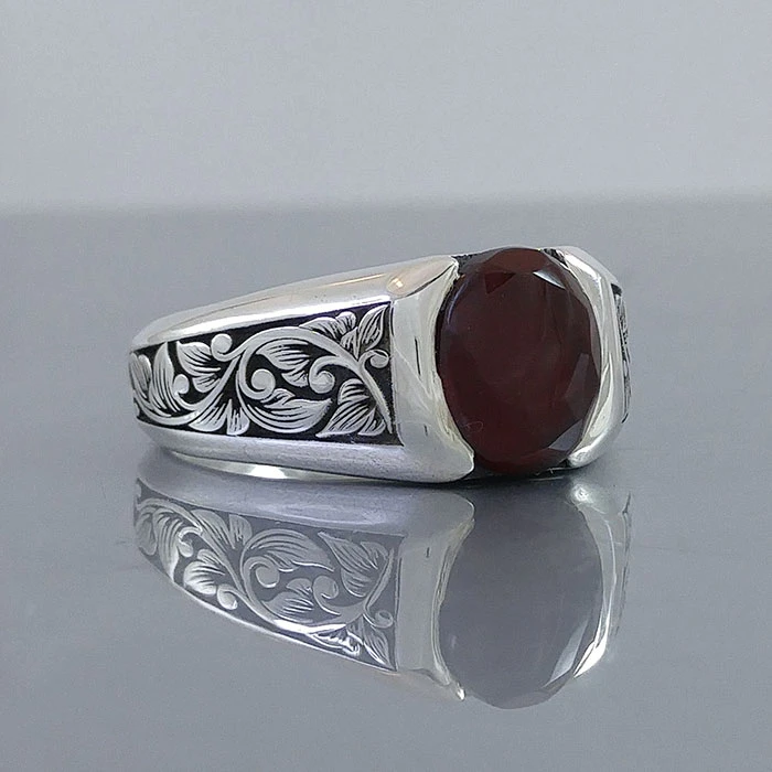 انگشتر نقره مردانه عقیق یمنی سرخ کد S2540