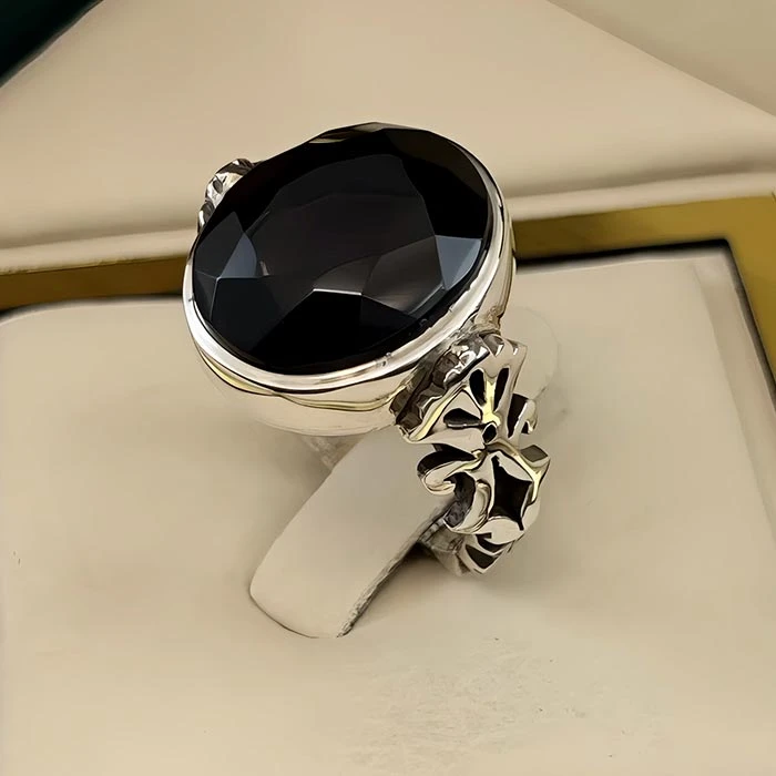 انگشتر نقره مردانه عقیق یمنی مشکی کد S2547